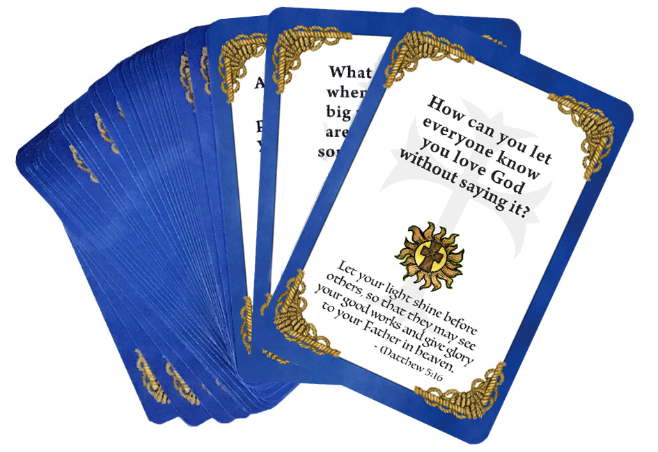 The bottom of each Question Card contains Scripture (NRSV) that can be used to guide the discussion.